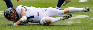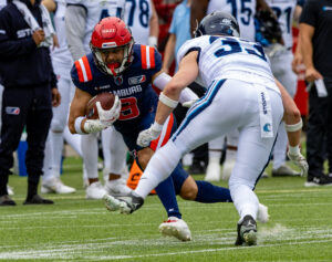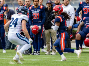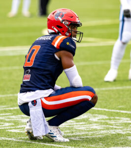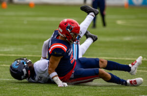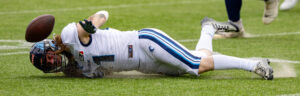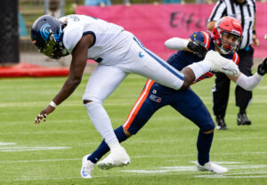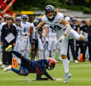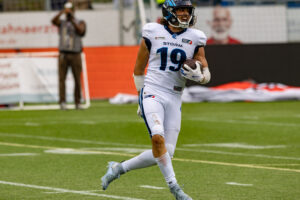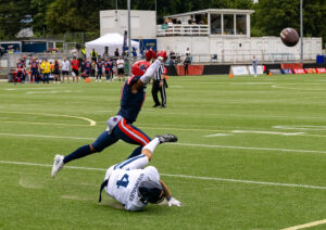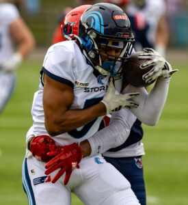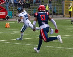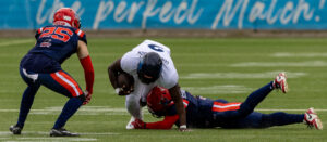 #3 Terryon Robinson (WR) Hamburg Sea Devils run over the field.