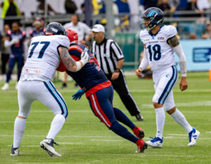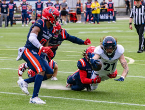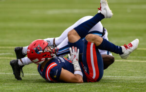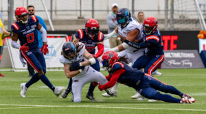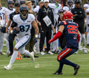 #19 Brendan Beaulieu (WR) Nordic Storm tackle.