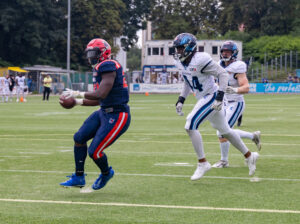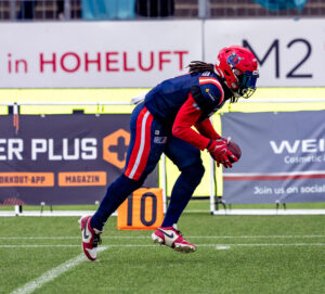 #11 Tamsir Seck (WR) Hamburg Sea Devils run with the ball.
