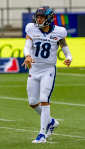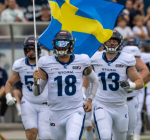 #18 Jadrian Clark (QB) Nordic Storm with swedish flag.