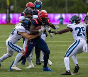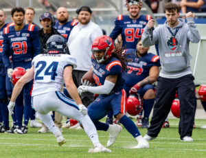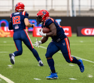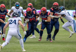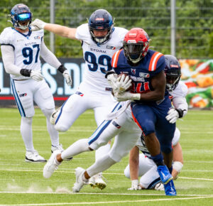 #24 Chrisman Kyei (RB) Hamburg Sea Devils run with the ball.