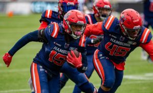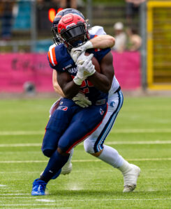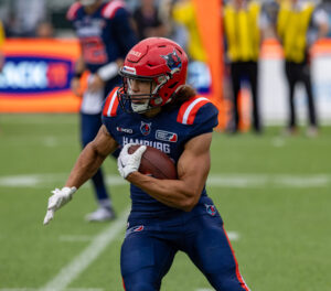 #24 Chrisman Kyei (RB) Hamburg Sea Devils run with the Ball.