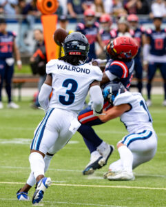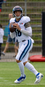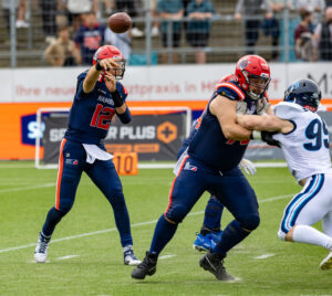#12 Leon Micah (QB) Hamburg Sea Devils pass to the WR.