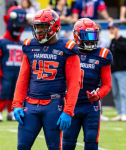 #45 Kyle Kitchens (DL) Hamburg Sea Devils and #1 Nazir Streater (DB) Hamburg Sea Devils