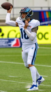 #18 Jadrian Clark (QB) Nordic Storm pass the ball to a WR.