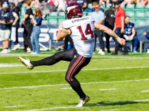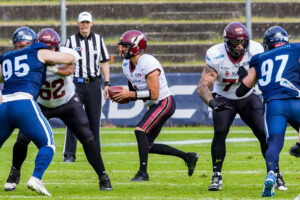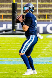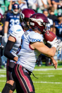 #14 Maximilian Eisenhut (Punter) Rhein Fire punt the ball.