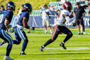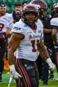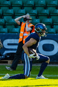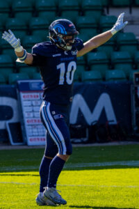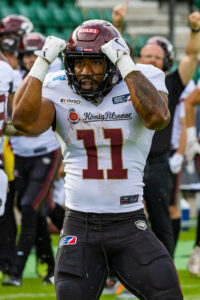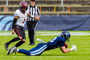 #10 Harlan Kwofie (WR) Rhein Fire catch the ball.