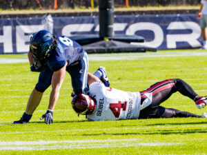 #55 Hugo Dyrendahl (LB) Nordic Storm tackle #13 Jannik Loercks (WR) Rhein Fire