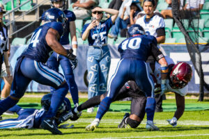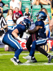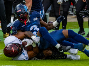 A tackle from #3 Chad Walrond (SS) Nordic Storm.