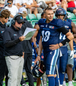 #18 Jadrian Clark (QB) Nordic Storm talk to John Shoop (HC & OC) Nordic Storm