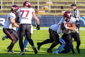#6 Sergej Kendus (RB) Rhein Fire run with the ball.