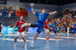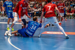 Agriffs Stop von 9 – Jacob Lassen Handball Sport Verein Hamburg gegen 44 – Lenny Rubin – TVB 1898 Stuttgart
