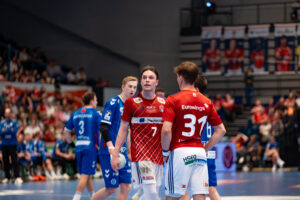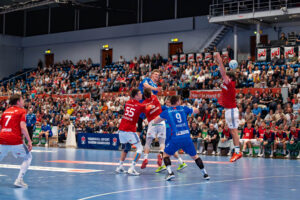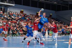 Torverhinderung von 4 – Andreas Magaard Handball Sport Verein Hamburg gegen 8 – Nico Schoettle – TVB 1898 Stuttgart