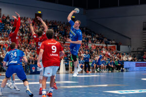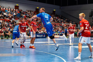 Torwurf durch 34 – Kai Haefner – TVB 1898 Stuttgart gegen 16 – Robin Haug Handball Sport Verein Hamburg