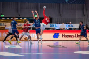 Torwurf von 64 – Maximilian Hejny SG BBM Bietigheim gegen 12 – Mohamed El-Tayar Handball Sport Verein Hamburg