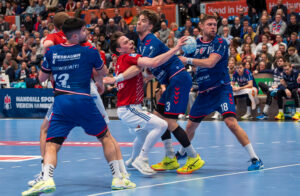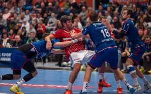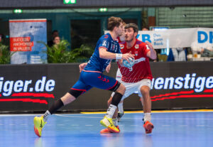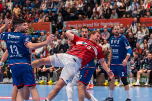 Block von 64 – Maximilian Hejny SG BBM Bietigheim gegen 7 – Leif Tissier Handball Sport Verein Hamburg