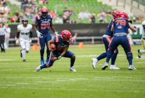 Durchbruch von #24 Chrisman Kyei Hamburg Sea Devils auf dem weg richtung Endzone.